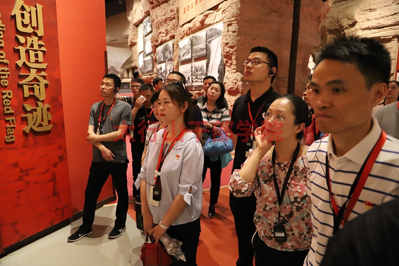 紅旗渠紀(jì)念館不僅是一座以研究、展示、傳承、收藏紅旗渠歷史的一座展館。也是我們學(xué)員感悟“自力更生、艱苦創(chuàng)業(yè)”的紅旗渠精神的一個(gè)重要窗口。學(xué)員們?cè)谡桂^前留念,并進(jìn)行現(xiàn)場(chǎng)教學(xué)。