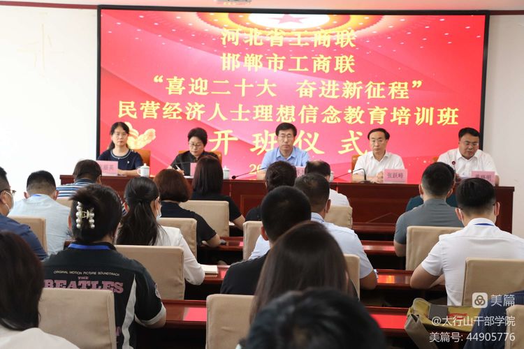 6月23日—25日,河北省工商聯(lián)、邯鄲市工商聯(lián)在我院舉辦了“喜迎二十大 奮進新征程”民營經(jīng)濟人士理想信念教育培訓班。23日下午,省工商聯(lián)黨組成員、副主席尚德志,市委常委、統(tǒng)戰(zhàn)部長張躍峰出席開班儀式并講話,市政協(xié)副主席、市工商聯(lián)主席曹淑霞主持開班儀式,涉縣縣委書記董路明致歡迎辭。